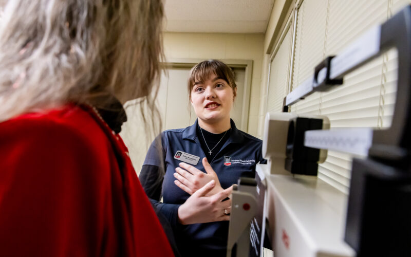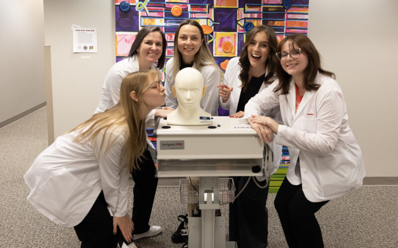 Students in NIU’s audiology program are getting hands-on practice with a new high-tech patient who never flinches. Thanks to a generous grant from the Northeast Illinois Area Health Education Center (AHEC), CARL, the Canadian Audiology Simulator for Research and Learning, has been