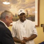 Dale Brown Jr., ’19, served over 200 cinnamon rolls to after NIU President Dr. Lisa Freeman’s State of the University address Oct. 22. Brown received a B.S. in Hospitality and Tourism Management and a B.S. in Business Management. In addition to pursuing his masters here at NIU in digital marketing, he is the owner of Dale’s Rolls.