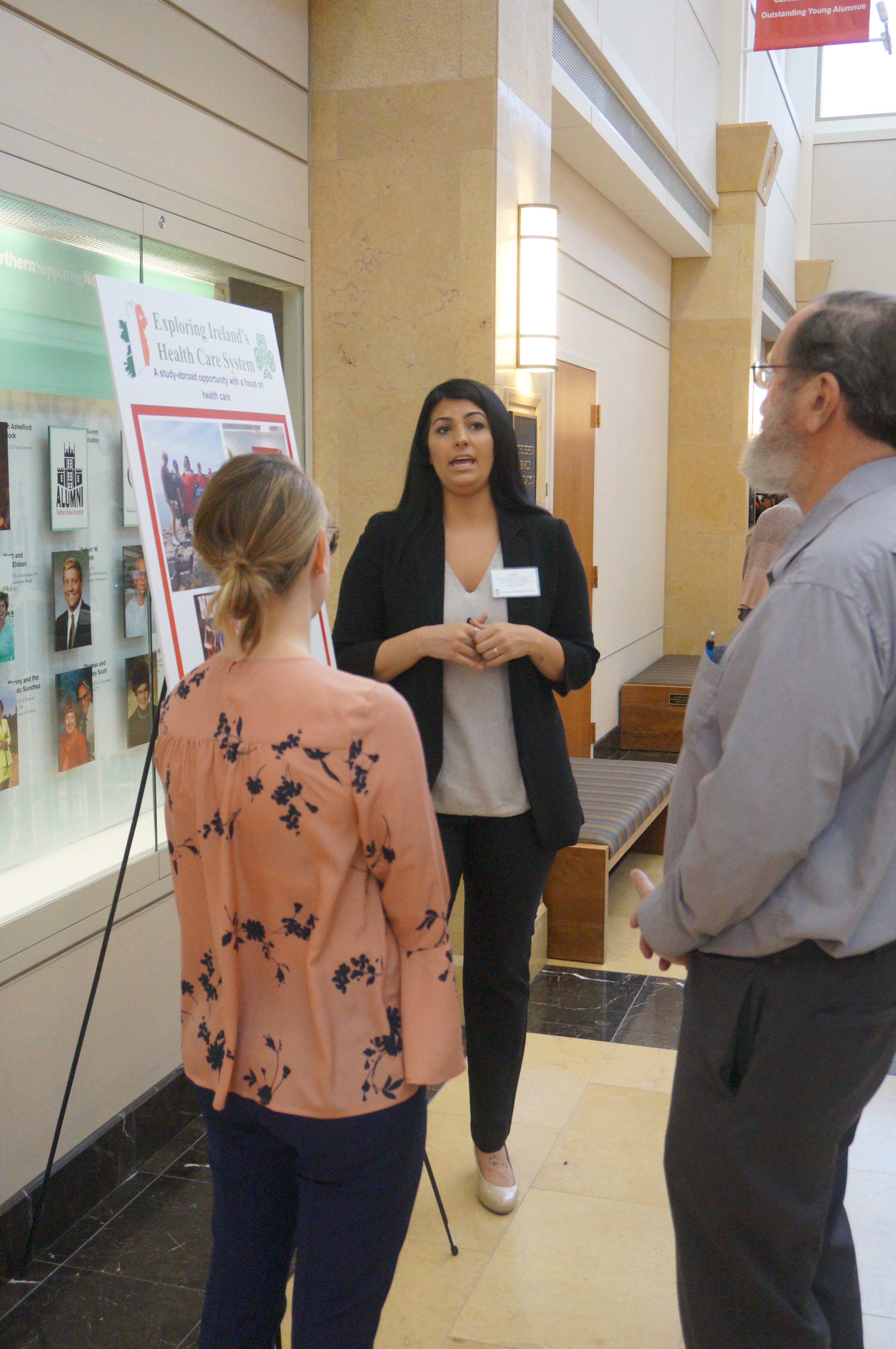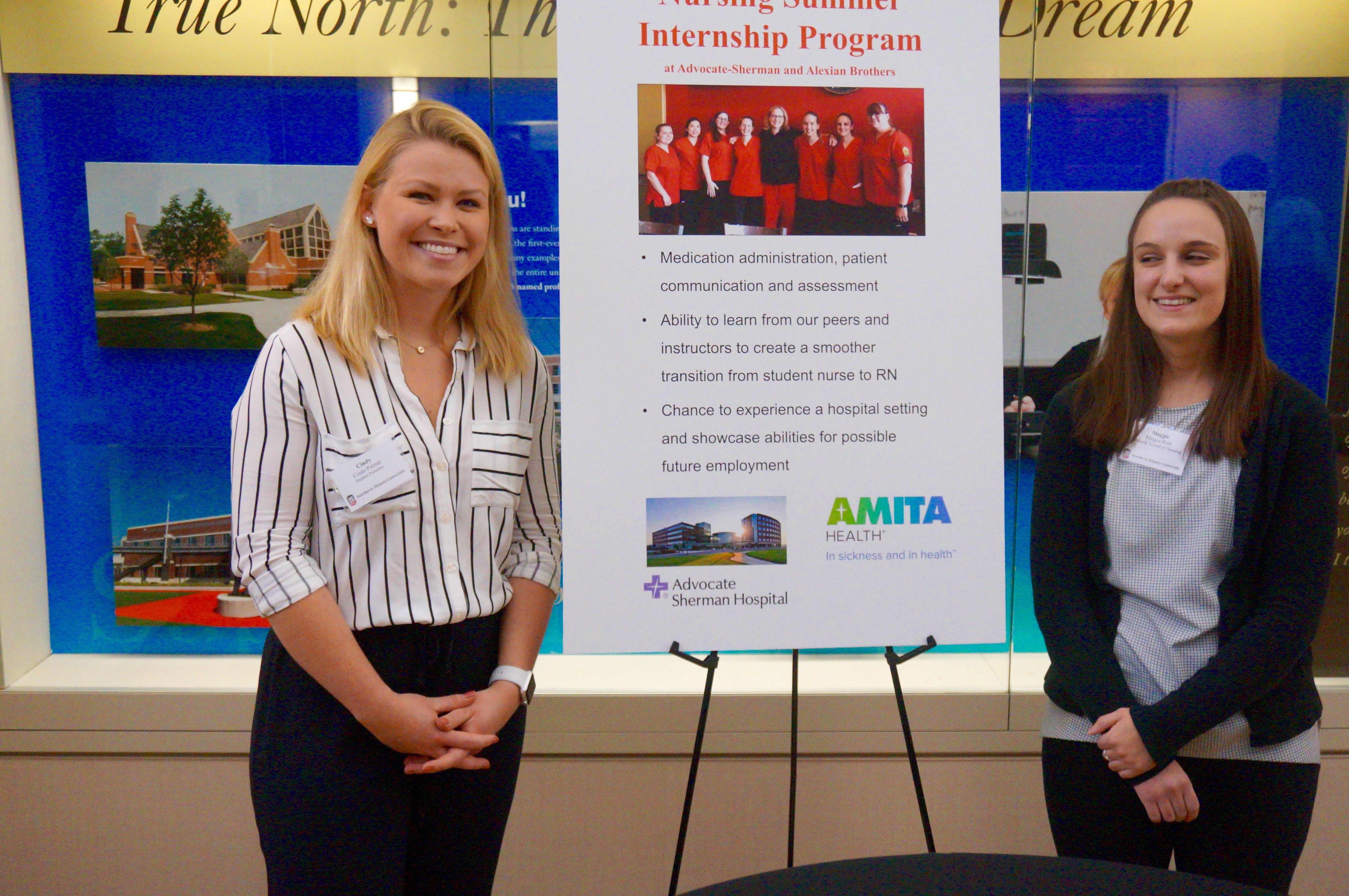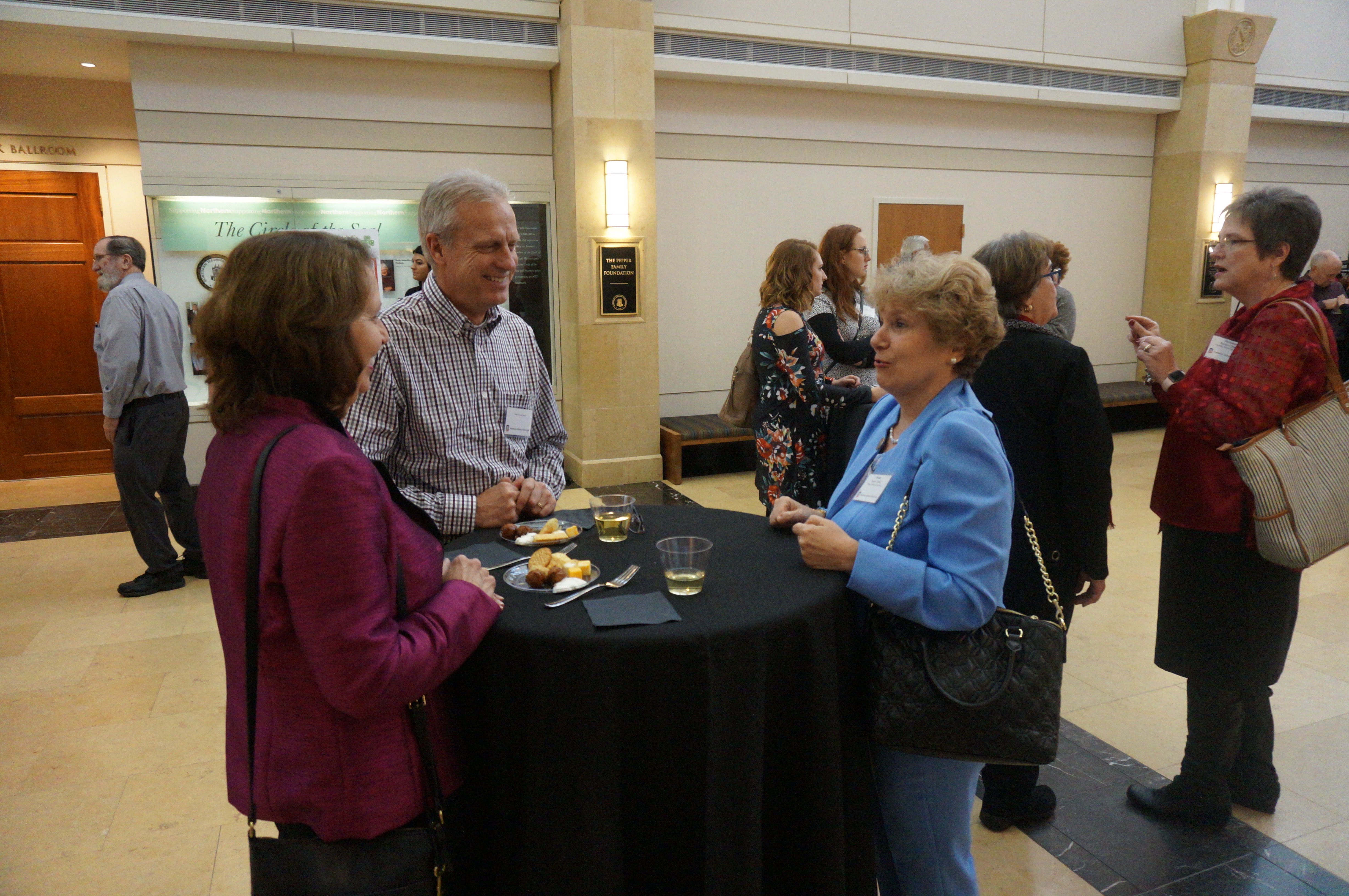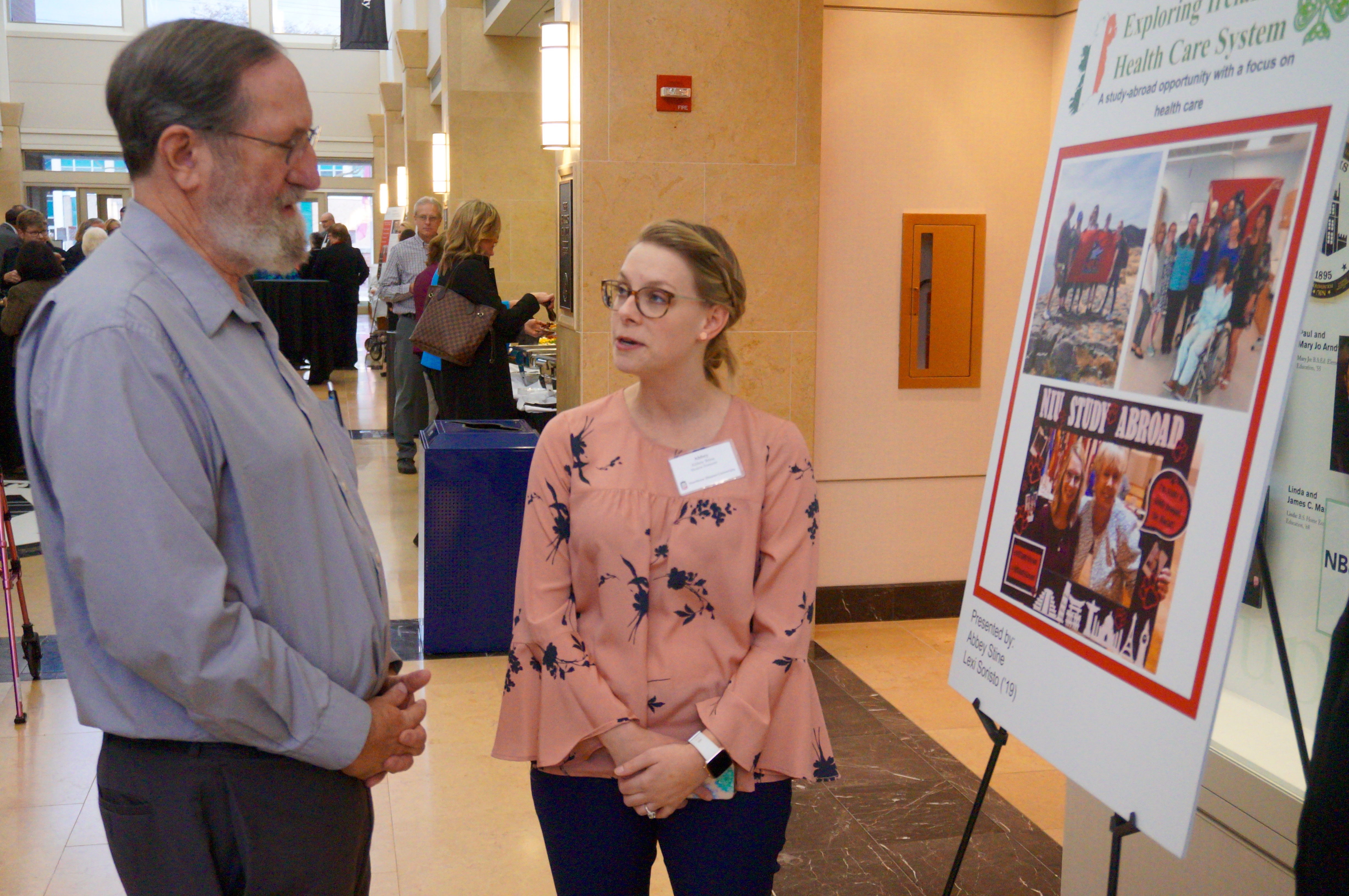 Over 100 nursing school alumni and friends gathered at the Barsema Visitors Center in DeKalb to celebrate. Alumni from five decades attended, as well as former and current nursing faculty. Current students presented posters about internships, study abroad, organizations, and research. Guests also enjoyed meeting CAE Apollo the adult patient simulator and seeing NIU nursing student uniforms throughout the years. Prior to the event, some guests toured the current School of Nursing.