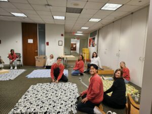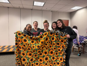 “I was so ecstatic about the turnout and how many people came to volunteer and have a good time,” said Sara Taylor, nursing student and SNO president. “You could feel the pure joy and excitement in the room with everyone either tying the blankets or making a Christmas card.”