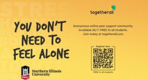 Final exam week and the end of the semester is here and your stress level might be climbing. Take advantage of  Togetherall, a peer-to-peer 24-7 support service offered by NIU Counseling and Consultation Services (CCS),  that allows you to speak to other college students, via an online chat, about things with which you are struggling.
