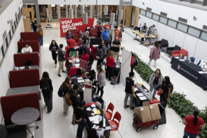 More than 70 Huskies from the College of Health and Human Sciences (CHHS) came together in the Wirtz Hall Atrium to unwind and connect during the Mental Health Awareness Social, an afternoon event hosted by the CHHS Academic Advising team.