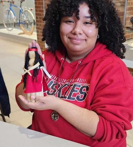 More than 20 people gathered at the Pick Museum of Anthropology at NIU for a corn husk doll making workshop on Nov. 16. The event was hosted by Christy DeLair, director of the Pick Museum, and led by Nicole Holland, advising director,